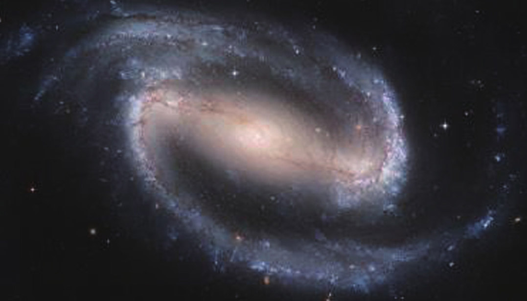 棒旋星系的中央不是球形或椭球形的,而是棒状的。星系中心有核球,其核球像有一根棒串着(图8-9),再从棒的两端伸出旋臂,这个棒状结构是由恒星、气体和尘埃组成的。棒旋星系用符号SB表示,亦按旋臂的松紧程度,分SBa、SBb、SBc三个亚型。SBa型的旋臂最紧,核球最大;SBb型的旋臂比较松,核球比较小;SBc型的旋臂最松散,核球最小。棒旋星系被视为旋涡星系的一种变体,在所有旋涡星系中,棒旋星系的比例约占2/3。银河系、仙女座星系都是棒旋星系,科学家认为棒状结构的存在表明该星系已经发展到成熟阶段。