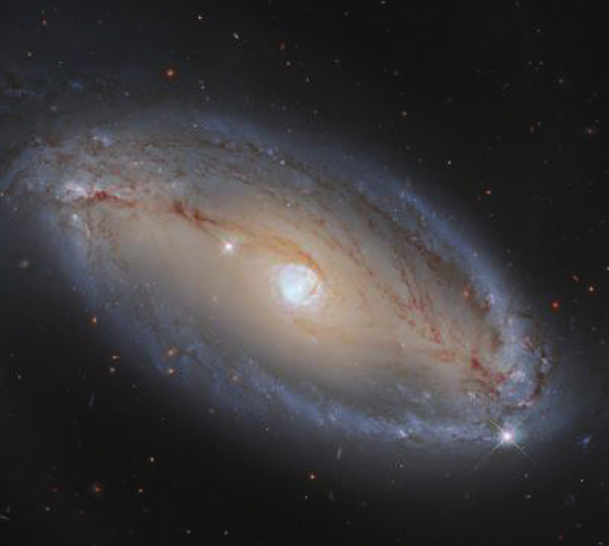 塞弗特星系是1943年由天文学家卡尔·塞弗特(Carl Seyfert)首次发现的,是最常见的活动星系,也是能量最低的活跃星系。所有的塞弗特星系在可见光下看起来都像普通星系,但它们会发射出相当大的红外辐射,有些还能发射X射线。在红外线波段观测时,星系圆环面看上去就像是发光的甜甜圈。塞弗特星系的射电光度往往较低,尽管有些星系会产生射电喷流。图8-11是哈勃太空望远镜拍摄的旋涡星系NGC 5728的图像,这是一个塞弗特型活动星系。