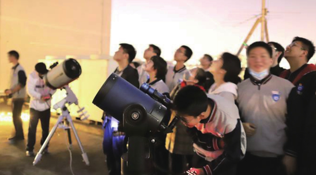 通过拓展型课程夯实“会学习”。以提高学生综合素质为目标,在天文校本必修课的基础上,构建与具体学科知识相融合的拓展型课程,促进学生对所学知识的融会贯通。面向对天文有较高兴趣或有一定基础的学生,采用“拓展+社团”的形式,打造拓展型课程与天文社团互融的平台,构建拓展型课程与研究型课程的交集。在拓展课的基础上,以高二学生为主,组建新一届天文社,开展天象观测等活动,即使课程得以延伸,也为学生继续探究和丰富学习经验提供了平台。