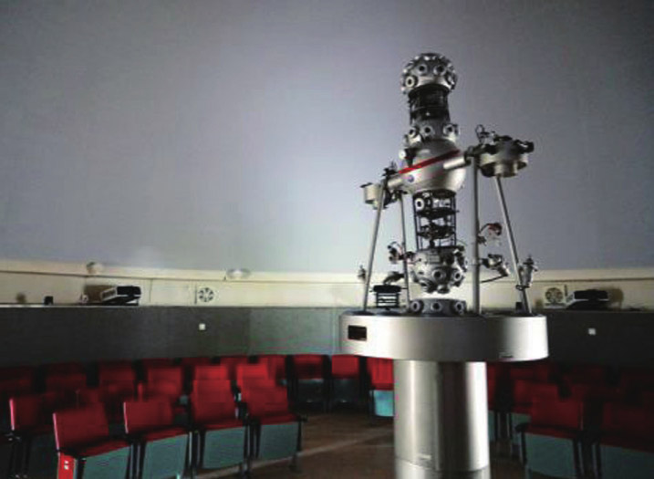 通过天文台和天象馆的日常开放、科技节的观摩演示以及特殊天象的观测活动等,发挥学校天文基础设施的功效,让全校师生都能够参与到天文活动中,感受和体验天文学的魅力。我们学校天文台数年来坚持用22厘米折射式望远镜投影记录太阳黑子,至今累计已有2000多人次参加太阳黑子观测,日积月累下来的太阳黑子资料有3000多张。天象馆可以播放球幕天文视频,天象仪可以演示四季星空、太阳系行星运动,以及流星、彗星和卫星的运动,天体视运动等,每个班级至少要在天象馆上两次课,使学生对星空、对宇宙有一个新的认识,激发学生的学习兴趣(附图1~4)。