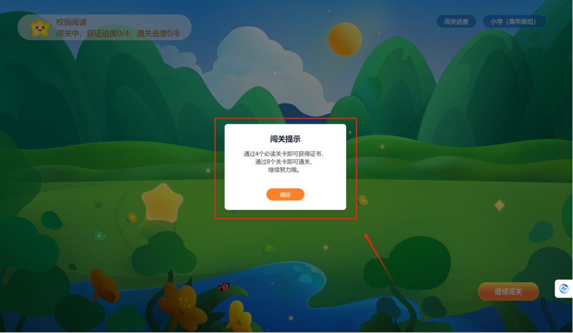 (5)点击“继续闯关”,即刻开启您的闯关之旅!