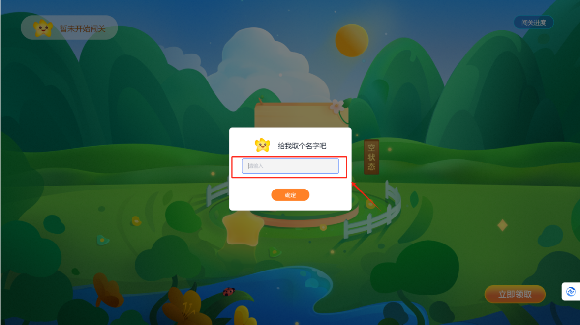 (2)输入个性化昵称,点击“确定”,为你的星宝取一个名字,它会全程陪伴您完成闯关。