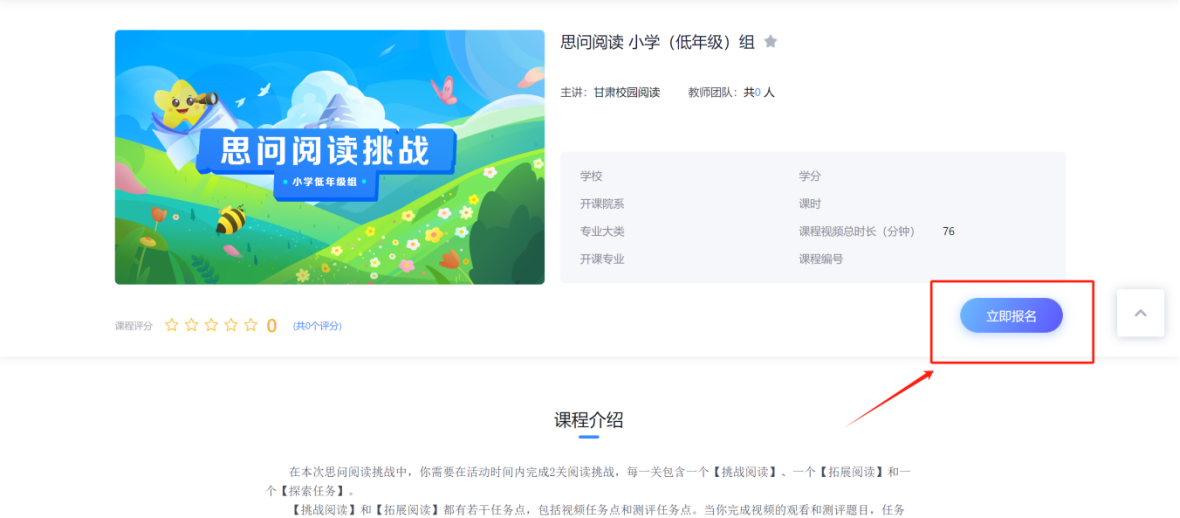 (3)报名成功后,点击“进入课程”,进入课程开启阅读学习之旅。