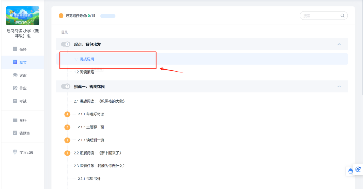 (5)点击对应“章节目录”,开启思问阅读挑战。