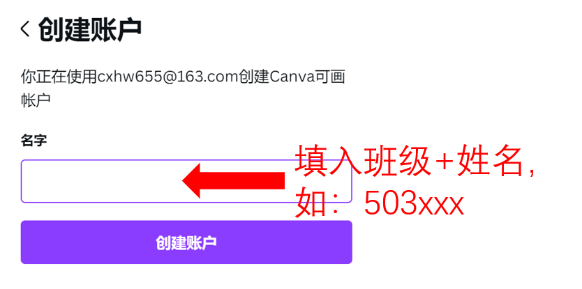 账户名为班级+姓名,如五年级3班张三,则此处写503张三。