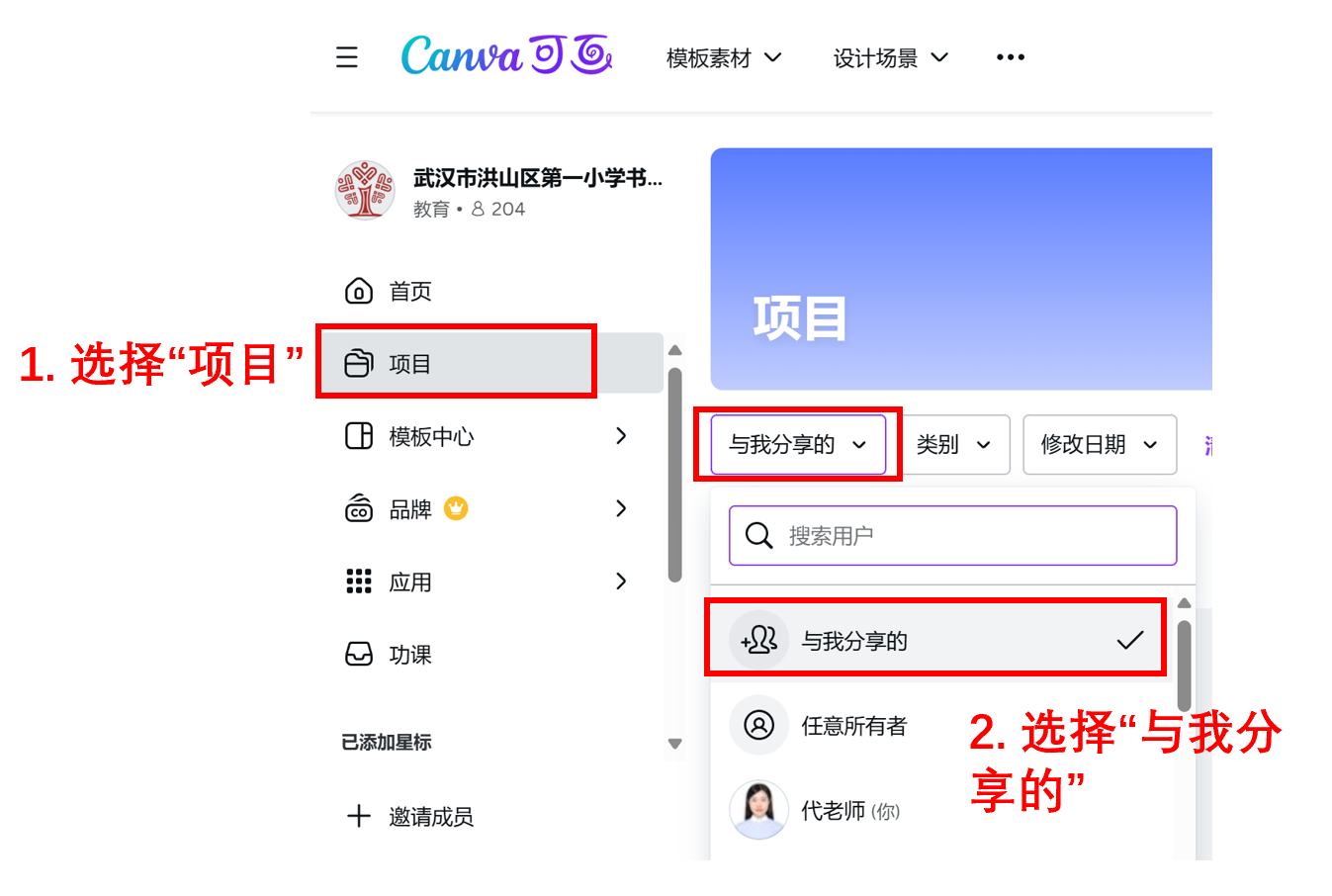 在下方的项目中找到组长分享的项目。