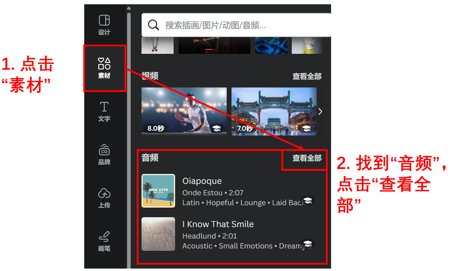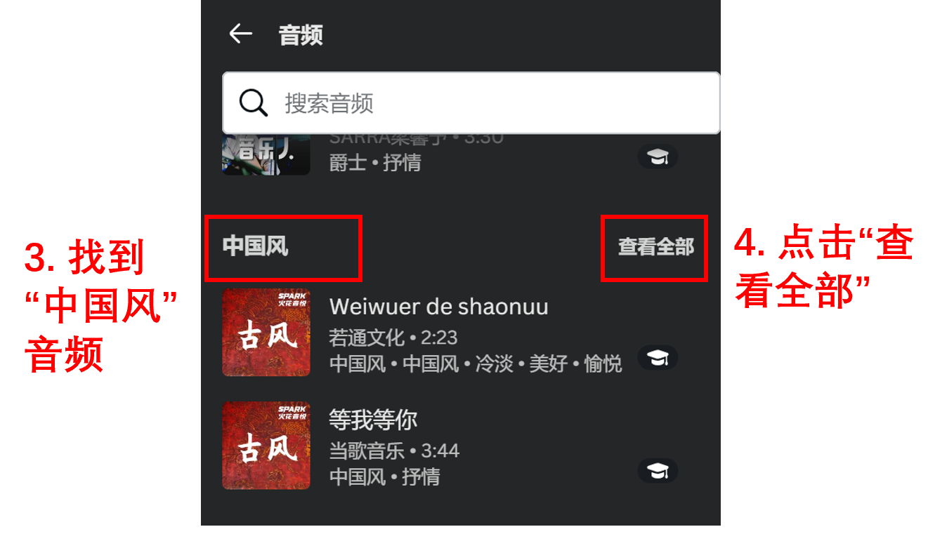 找到可画中适合为古诗配乐的“中国风”音乐素材。