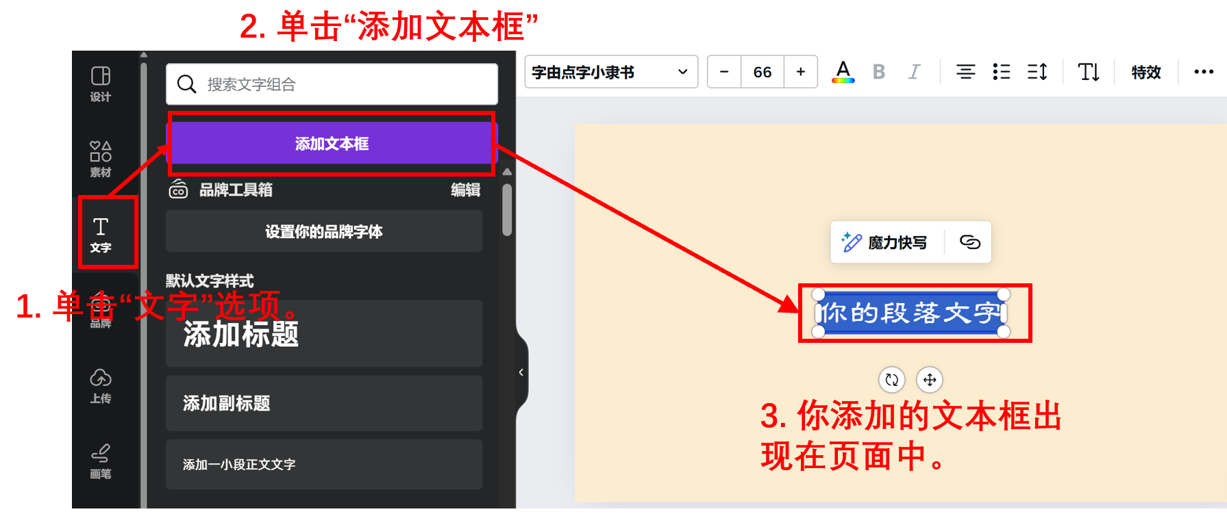 通过基本文本框添加文字,双击文字可修改文字内容。