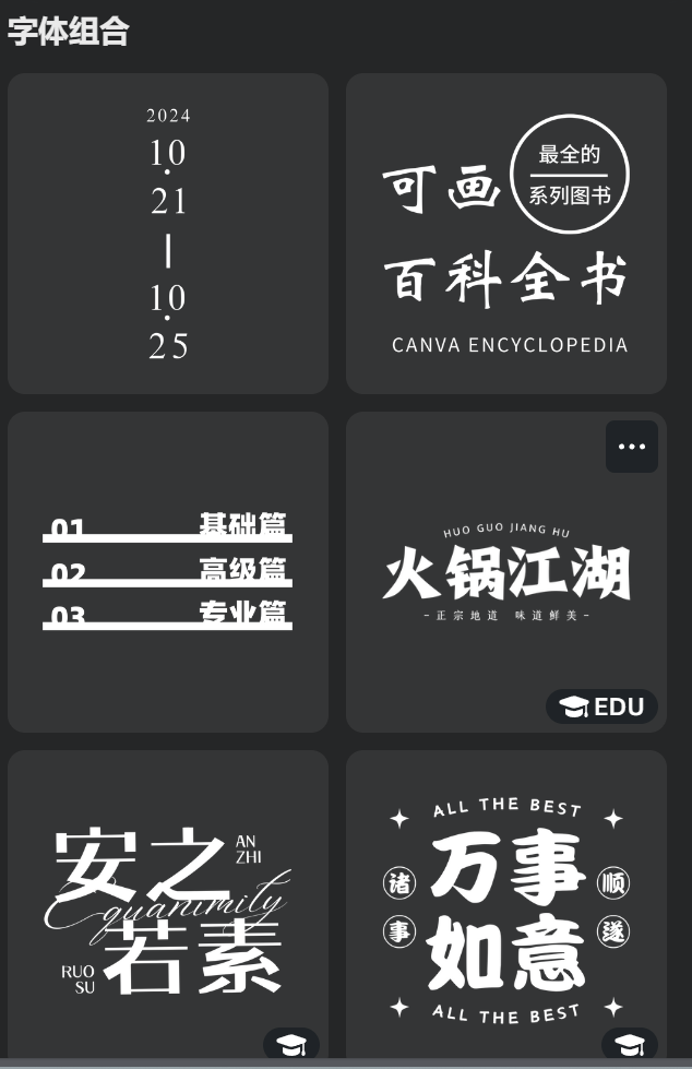 可画还为大家准备了很多字体组合,大家可以自行探索。