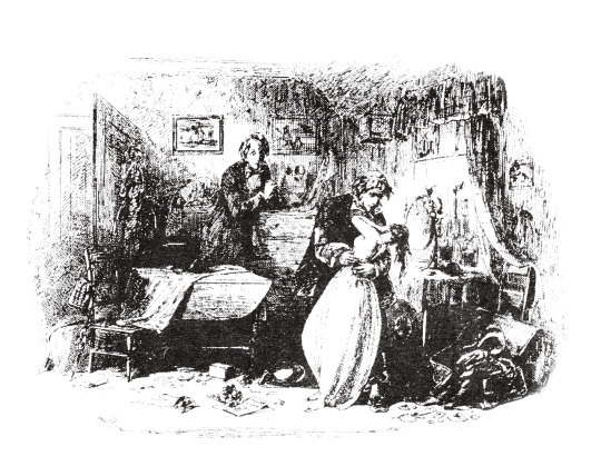 自从我们结婚以后,朵拉经常见到佩格蒂先生,而且非常喜欢他。我现在还能想起他在我眼前的身影:他手中拿着自己那顶粗质的便帽,站在朵拉沙发近旁,我那孩子气太太,抬起她那蓝莹莹的眼睛,含着怯生生的惊奇,看着他的脸。有时候在傍晚,黄昏时分,他来和我谈心,我会劝他在花园里抽一会儿烟,我们就一块儿慢慢地在花园里来回溜达。这时,他撇下的那个家,晚上炉火熊熊时,在我童稚的眼中那种舒适的气氛,以及在那个家周围呜咽的凄风,这些景象全都在我的脑子里清晰逼真地显现。
