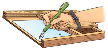 为了便于车轮的振动同时传到笔尖和纸张,可以采用图2-10的装置。用皮带将紧握钢笔的右手固定在木板a上,然后让木板a能在木板b的槽里左右滑动,再将木板b放在车厢座位前的小桌上的木座槽里,以便能前后滑动。从这个装置里我们观察到,乘客的手完全可以灵活地一个或一句接着写下去;而木座上那张纸所接受到的每一个振动,立即同时传到了笔尖。有了这种装置,你随时可在火车行进的时候写字,其方便程度几乎可以和在火车停止时候的一样,唯一不同的是,你眼睛可能看到一个奇怪现象,纸上的字迹竟然不停乱跳,这是因为你的头部和右手所受到的振动并不出现在同一时刻。
