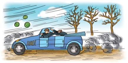 图2-9 原本“安全、和平”的西瓜掷向急驰而来的汽车时,它也会变成危险的“炮弹”
