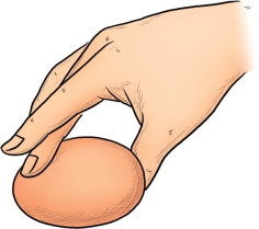 生蛋和熟蛋的关键区别在于它们的旋转情形很不相同。弄清了这一点,我们就能轻松地分辨生蛋和熟蛋。方法很简单,先将要判别的蛋放到一个水平光滑的地方上,平底盘或桌面都行,随后用两只手指轻搓它,使它快速旋转(图4-1)。如果它是熟蛋(也就是蛋黄熟透的蛋),那么它会快速地旋转,而且会转很长时间。反之,生蛋呢,转不到几圈就转不动了,速度当然也不快。而熟透的蛋,快速旋转起来完全呈现一片白影,甚至快到可以自己竖立起来。