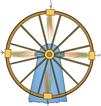 图4-5 豆种种植在旋转车轮上,其生长情形是豆茎向轮轴生长,而根却向车轮外生长