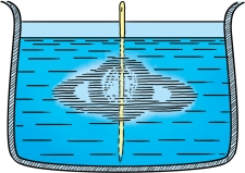 图5-7 如果用一根细长的木棒插入油滴中心,旋转木棒,不久就有一个油环从油滴中分离出来