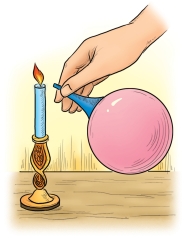 肥皂泡的薄膜总会受到表面张力的施压,从而会对泡泡里面的空气施加压力;我们可以把吹有肥皂泡的漏斗口靠近蜡烛火焰,松开堵在漏斗嘴上的手指,可以明显看到蜡烛火焰偏向一旁(图5-18),可见这层薄膜的力量可不小。