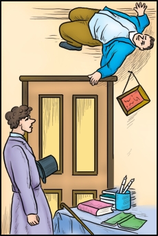“我马上去买一张铅板。”我说,“对,把铅片装在衣服衬里。嗯,靴子里也要装一层铅片,最后再给你做一只实心铅皮手提箱,那就解决一切麻烦了!到那时,您就不用老待在房子里,可随时出门了,甚至可以去国外旅行。您还丝毫不用担心安全,万一轮船出事,你只需要脱下身上的一两件衣服,就可以在空中飞啦。”