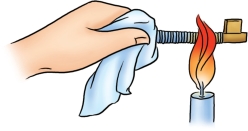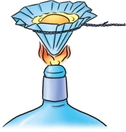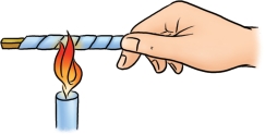 我们还可以做一个更形象的实验,用卡片纸做一个纸盒,在其上放一块锡片,放在火焰上烧,不过要让火焰刚好对着锡片与纸盒相触处。由于锡是热的良导体,能很快吸收纸的热量,从而不会让纸的温度升得过高,大大高于锡的熔点335℃。在这样的温度下,纸还不至于会燃烧起来。