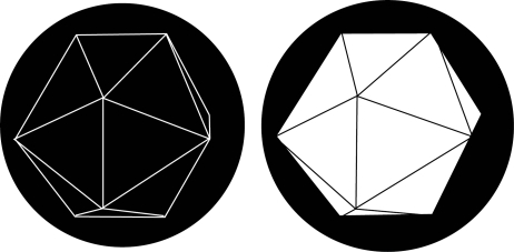 图9-14两张照片也是复制出来的实体照片,它们是同一个多面体,大小、形状完全相同,不同的是颜色,一张是黑底白线,另一张是白底黑线。如果用立体镜看这两张图片,我们将会看到什么呢?这个结果真让人意想不到。好了,我们还是听听物理学家赫尔姆霍茨的描述吧: