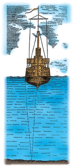 人们将这种测量海洋深度的装置叫作声呐,如今它在海洋测量中已获得广泛的应用。这之前,人们要测量海洋的深度,得让船只保持不动,而且每次得花好长时间。测量的仪器也很笨重。一端系着沉重测量锤的长绳从它缠绕的大绞盘上放下,随着测量锤往海底深处沉降,这个垂直下沉的过程有点慢,每分钟大约150米;要是把它拉上来呢,就更慢了。如此算来,要是海底深3000米的话,测量一次得花45分钟以上。如果用回声测深器,这样的深度,几秒钟就可以解决。不仅船只可以照常航行,并且测量结果也要精准得多。据现在最新的测量数据分析,其测量误差不足米,这相当于测量时间计时达到了秒。