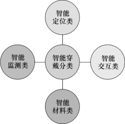 智能穿戴按功能可分为四类:智能定位类、智能监测类、智能交互类、智能材料类(如图6-1所示)。