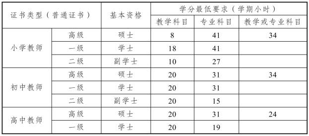 表2-1 日本教师资格证要求(1998年以后)