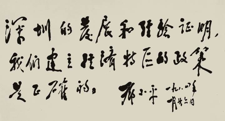 1984年1月,邓小平为深圳经济特区题词:“深圳的发展和经验证明,我们建立经济特区的政策是正确的。”