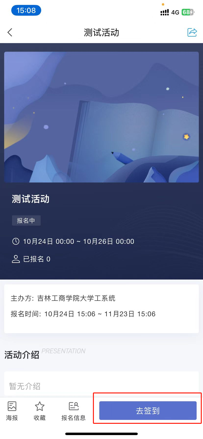 报名完成后,可以点击下方去签到进行活动的签到