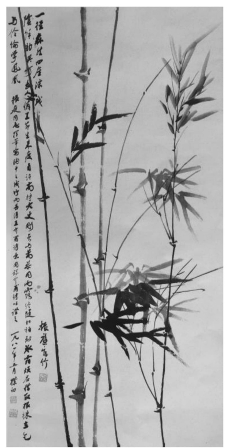 1981年5月,宋振庭在病中所画的《墨竹图》,赵朴初亲笔题词,录王安石《与舍弟华藏院忞君亭咏竹》诗