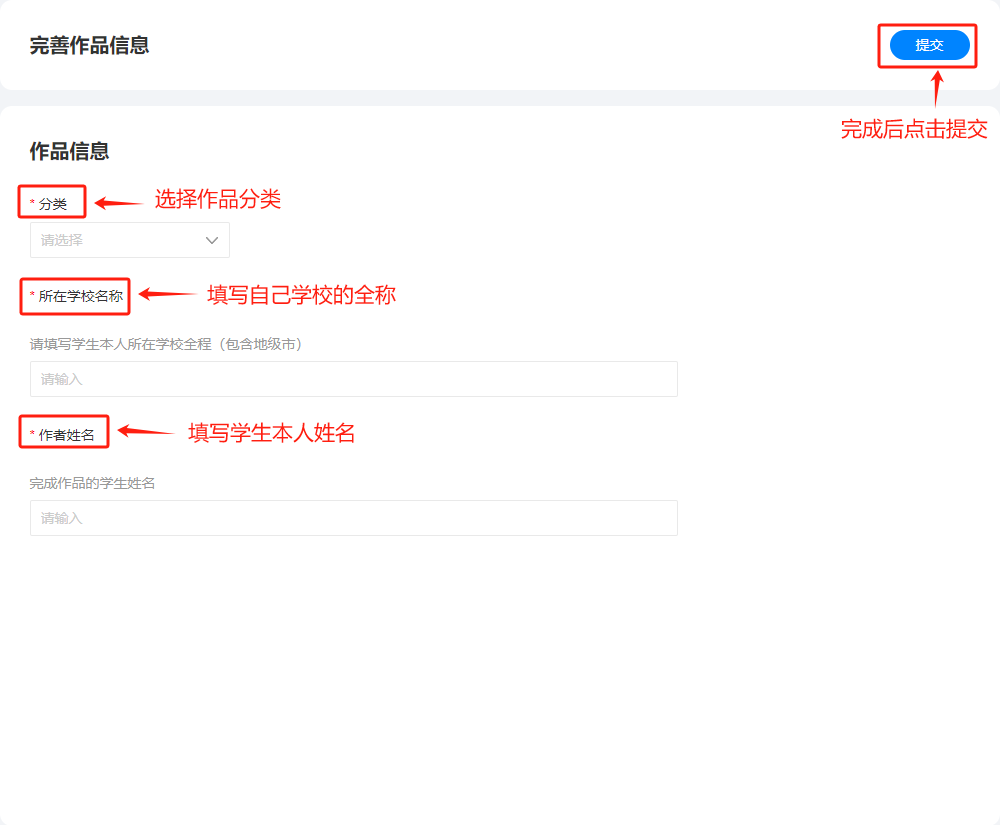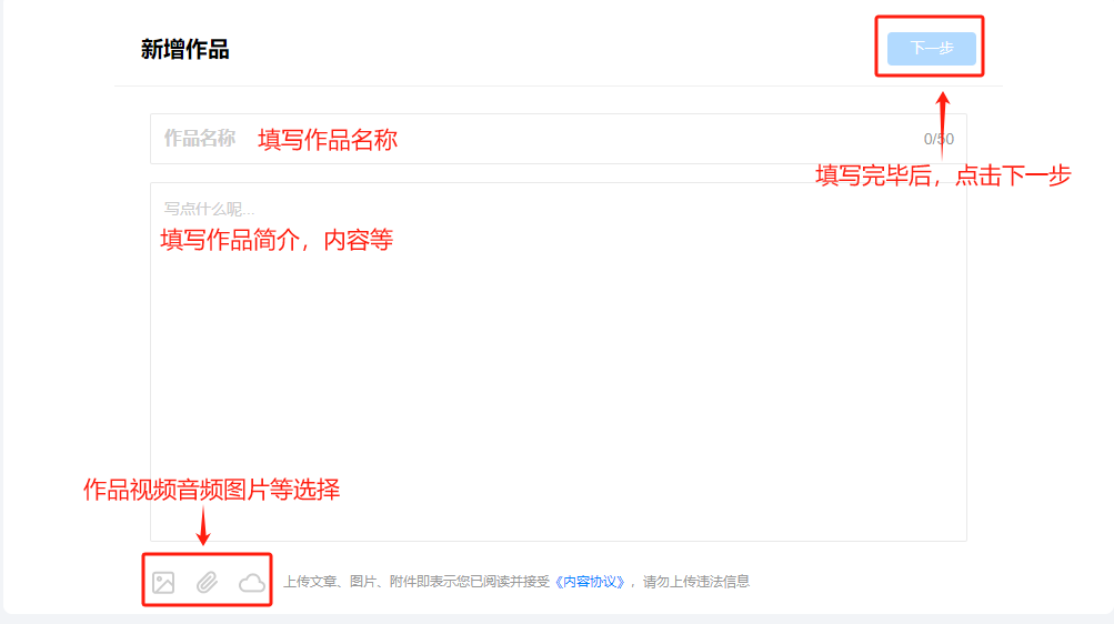 1.选择“提交作品”,填写作品内容,点击下一步。