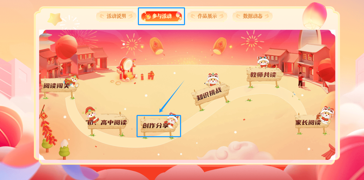 登陆活动界面后点击“创作分享”,跳转至创作分享区。