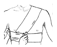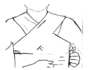 (2)再自背后斜至右肩经胸前斜下回到原处,再绕胸1周。如此重复进行,直至将全胸部包好。