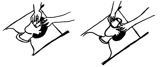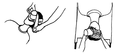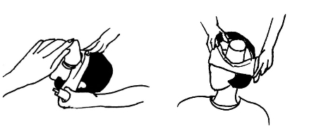 (3)用弹力绷带固定纸杯,先自纸杯上方绕至伤侧耳下,绕过枕后,自健侧耳上绕至健侧眼睛,自纸杯下方绕至伤侧耳上。从枕后再绕至健侧。如此循环往复。