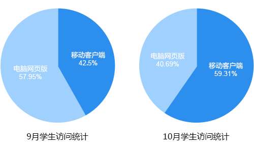 老师还对比了教学阶段访问量集中的9~12月,学生从各个终端登录课程的统计,发现通过学习通登录学习课程的比例越来越高。这说明移动教学有着传统网络教学无法比拟的优势,而学生们也乐于接受移动端灵活的教学互动。