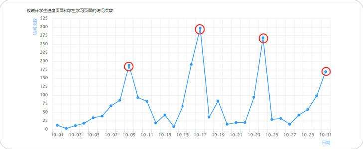 通过泛雅平台和学习通的大数据统计功能,张锋老师发现了一些有趣的规律。从学生的访问曲线来看,每周一面授课之前,学生的访问量都会达到一个小高峰。这说明学生往往会因为课堂上有任务来个小突击,也说明通过线下面授课引导学生自主学习行为是非常有效的。