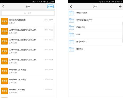 课后,老师在学习通上发布大作业,学生通过通知获得课程信息,完成作业后通过学习通上传共享,老师再进行评阅。用手机进行资源发布、作业发布和收取,会形成全面的记录。随着课程的进行,学生们自主上传共享的资料越来越多,形成非结构化的教学资源,与老师发布的结构化教学资源一起构成了课程的资料库。