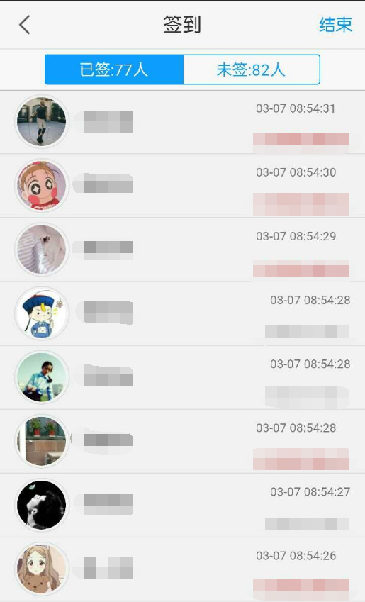 上课开始了,老师首先进入到了签到环节,短短几十秒签到的学生已经达到77人,对于刘老师来说这样的签到速度刘老师是非常满意的,用刘老师的话说“用了签到功能,就再也不想点名了,点名实在是太浪费时间”