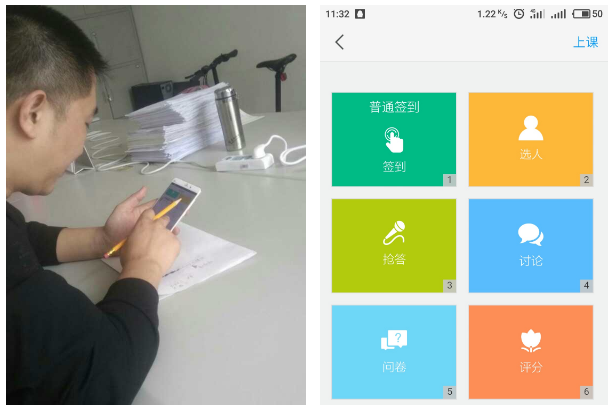 上课期间,刘老师通过学习通手机客户端与学生进行互动,通过学习通上“选人”插件,经过手机的随机选人来刺激学生的课程参与度,让学生能够在课堂上与授课老师进行一个问题互动;