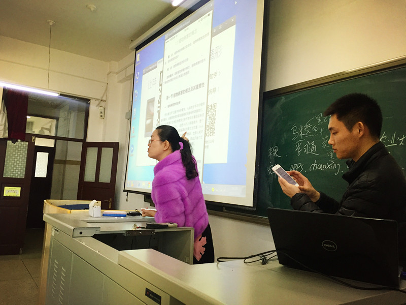 就是这位美丽的老师,走在了移动教学和网络教学的前沿,实施翻转课堂。其实这真的不是一件容易的事情,老师要牺牲自己的休息时间来建立课程平台,重新制作教学大纲,拍摄教学视频,规划翻转课堂教学方案等等,其中的辛苦就先不说了,来看一张老师拍摄时候的照片吧!