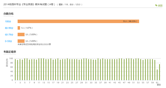 期末考试也是在网上进行,平台能很完善的统计出班级学生的评价学习水平和试卷的难度。