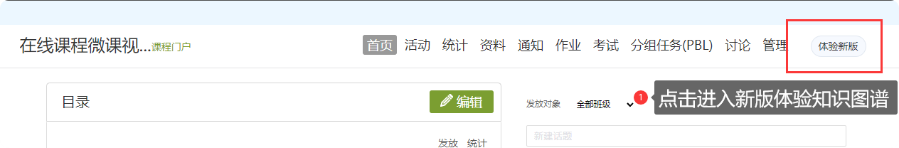 1.进入新版课程界面,左侧找到“知识图谱”/“知识点”