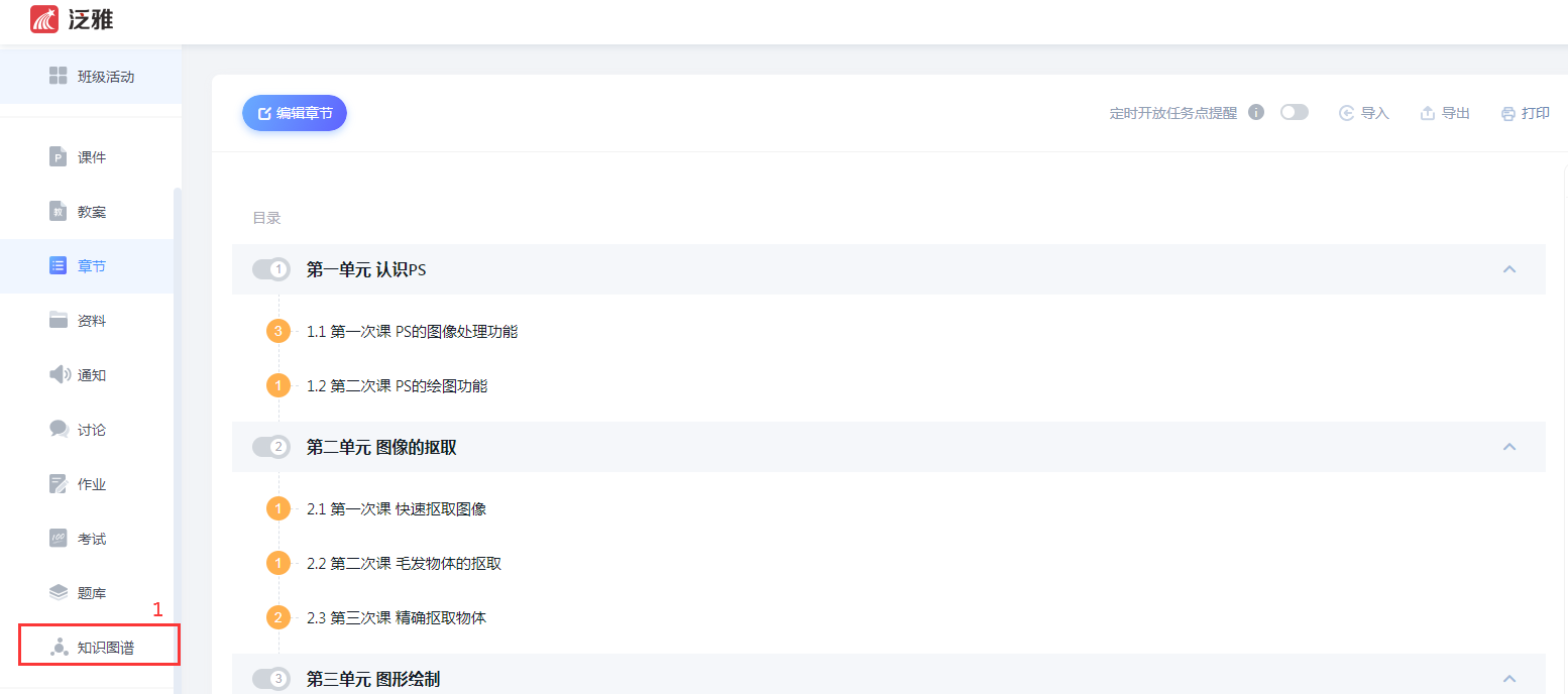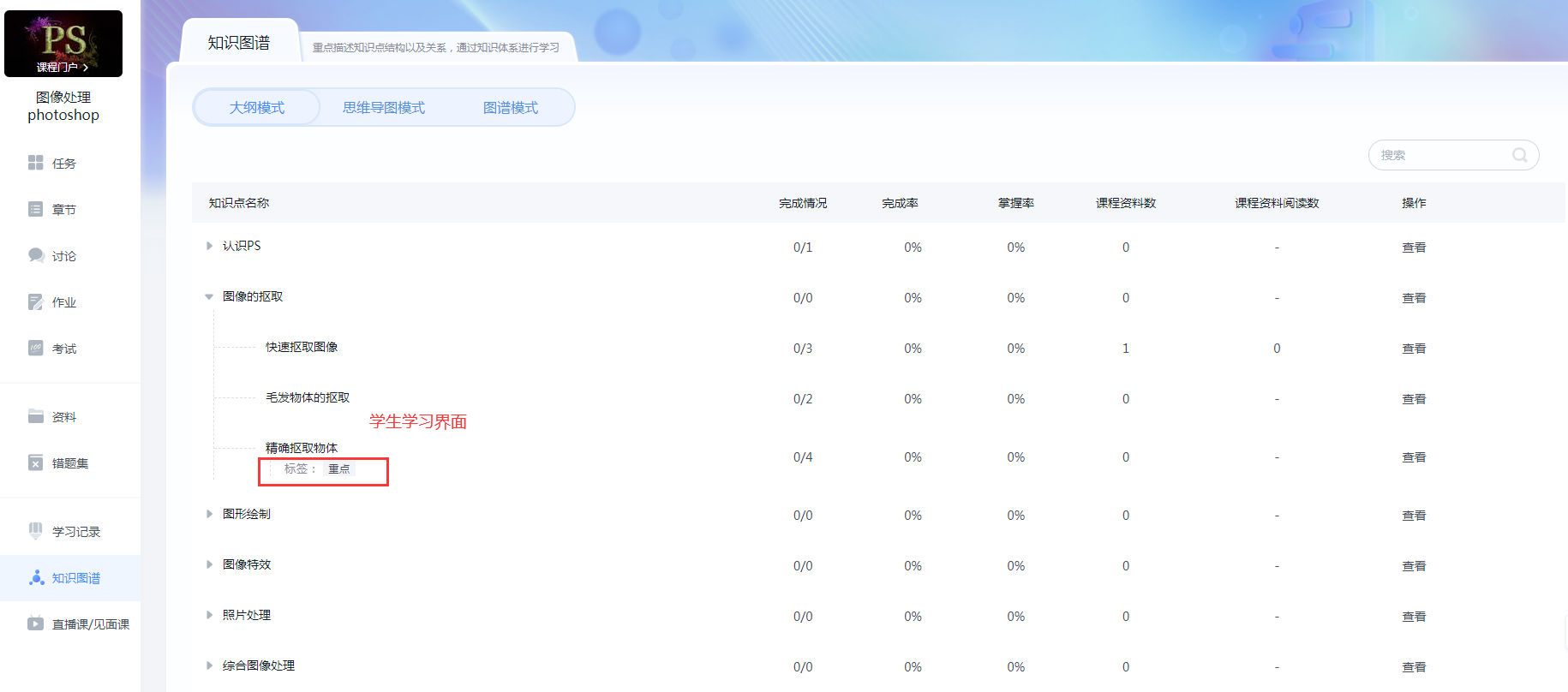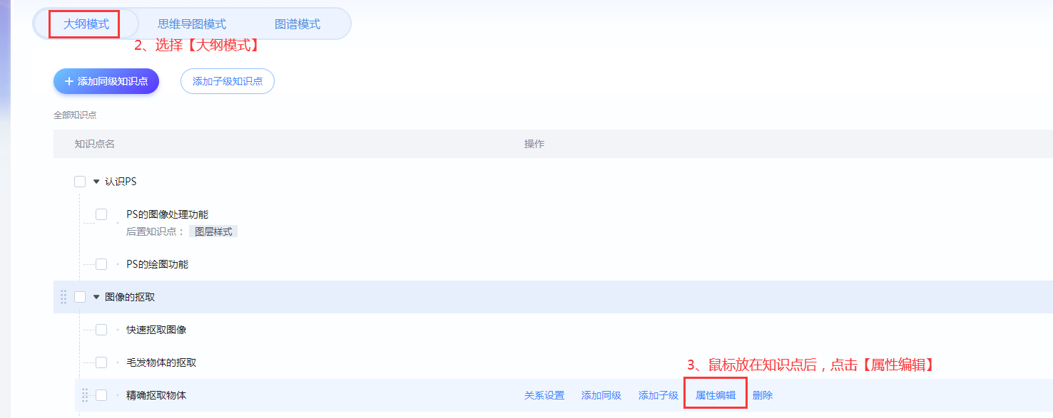 1、点击导航栏【知识图谱】中进入【大纲模式】