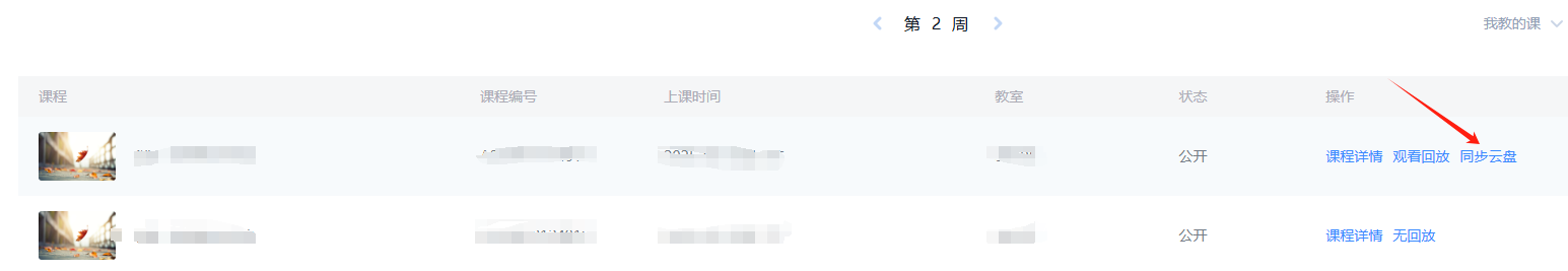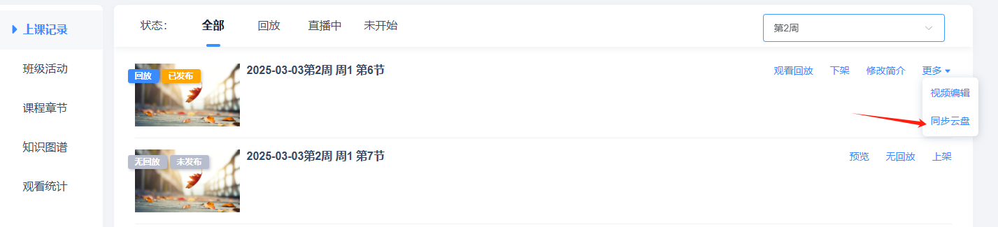 对于已经形成的录制资源,还可以进行云盘同步。教师可根据需求,在云盘中选择下载自己的录制资源,进行编辑后再上传章节或资料,增加课程内容。