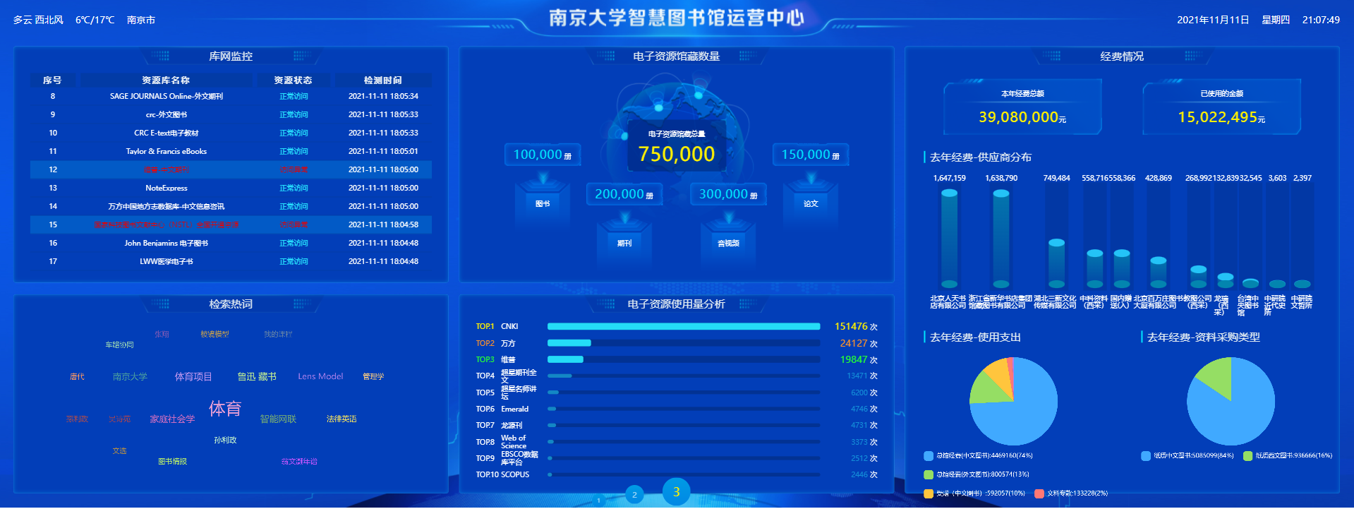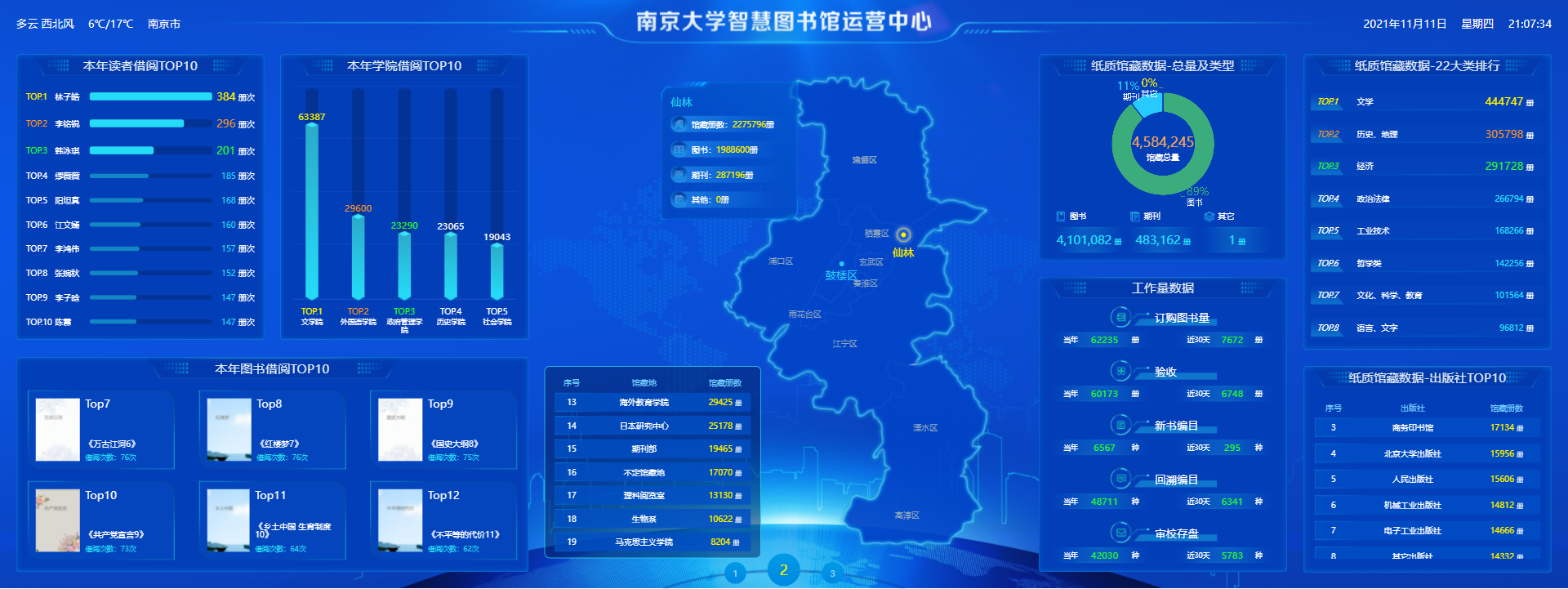 新一代图书馆管理系统(LSP)、馆员端、读者端、A类学科知识服务平台、南京大学智慧图书馆运营评测中心