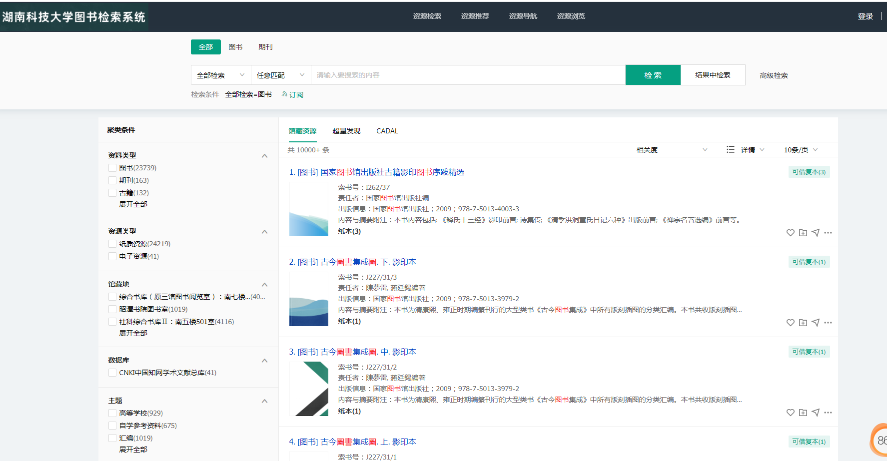 八、标准应用平台(馆藏统一检索,热门推荐,新书通报)