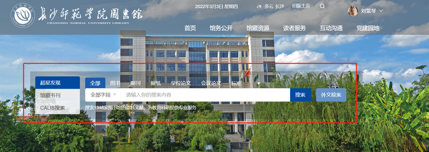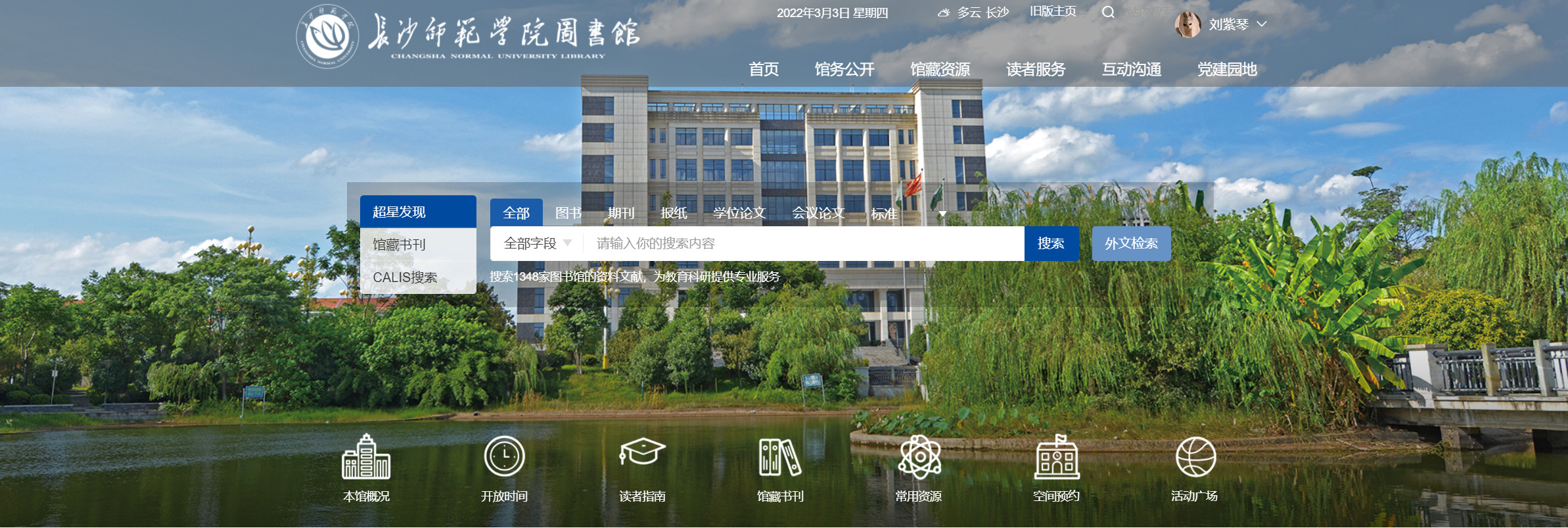 ① 图书馆主门户访问地址:https://csnulib.mh.chaoxing.com
