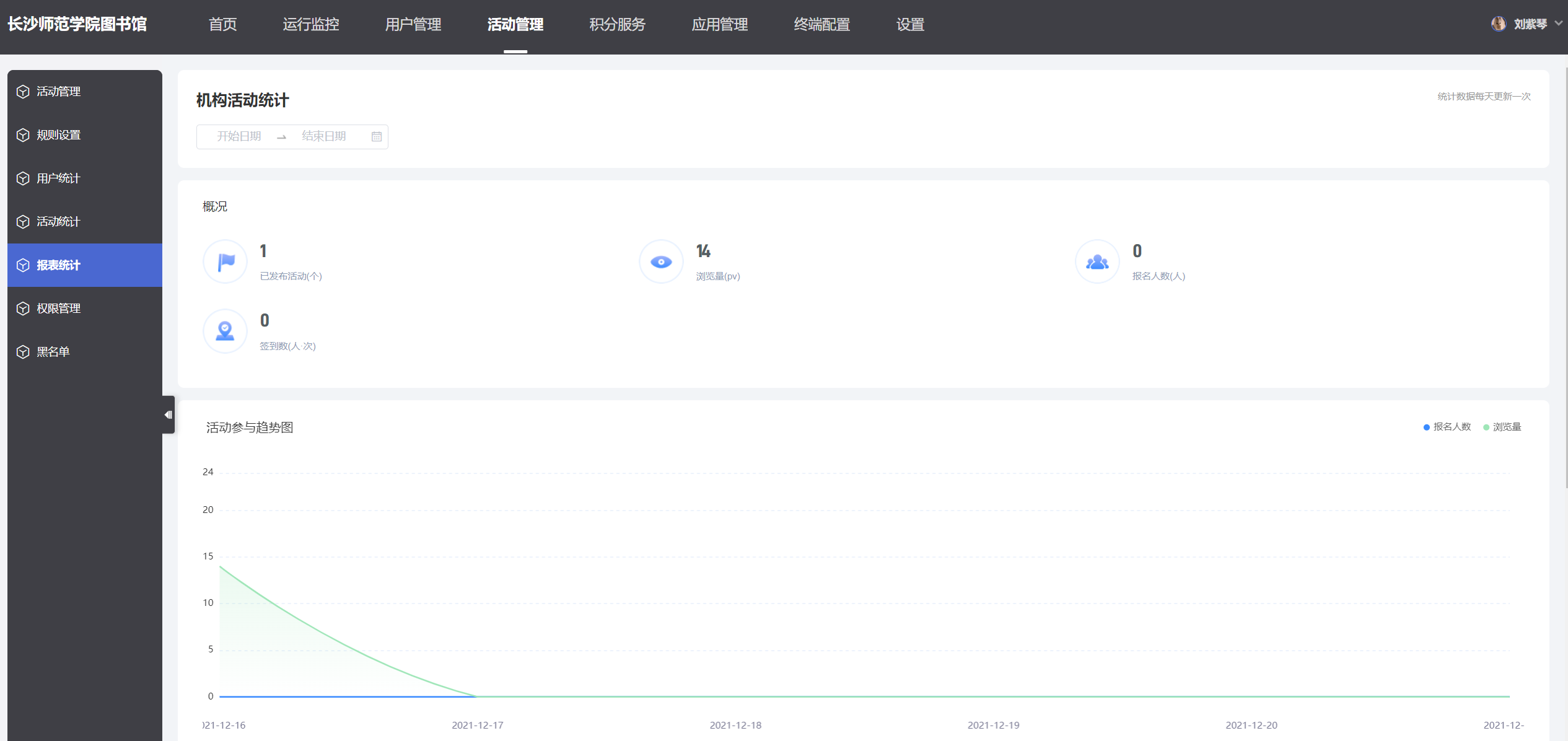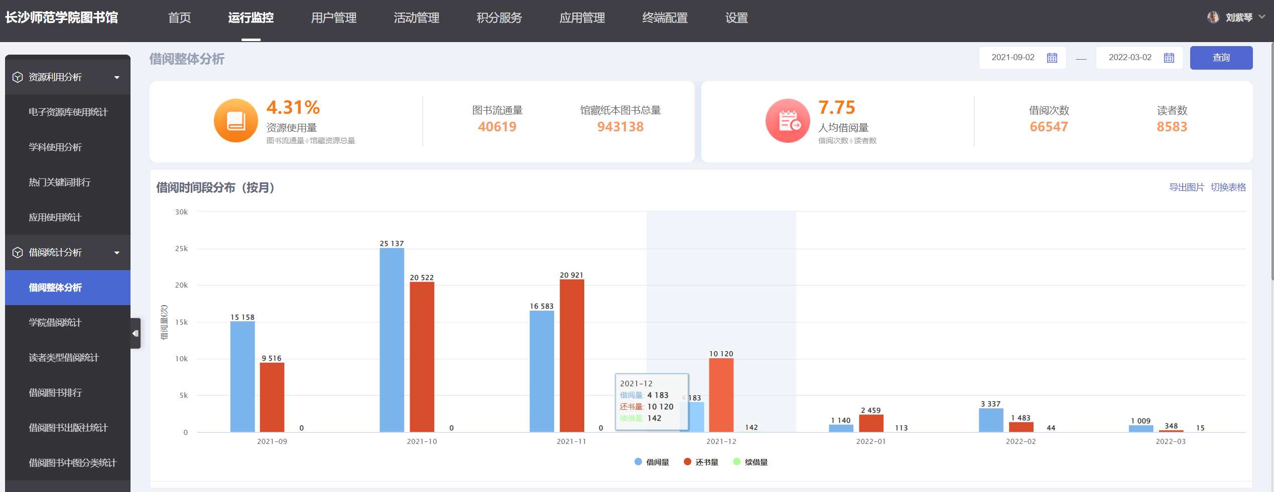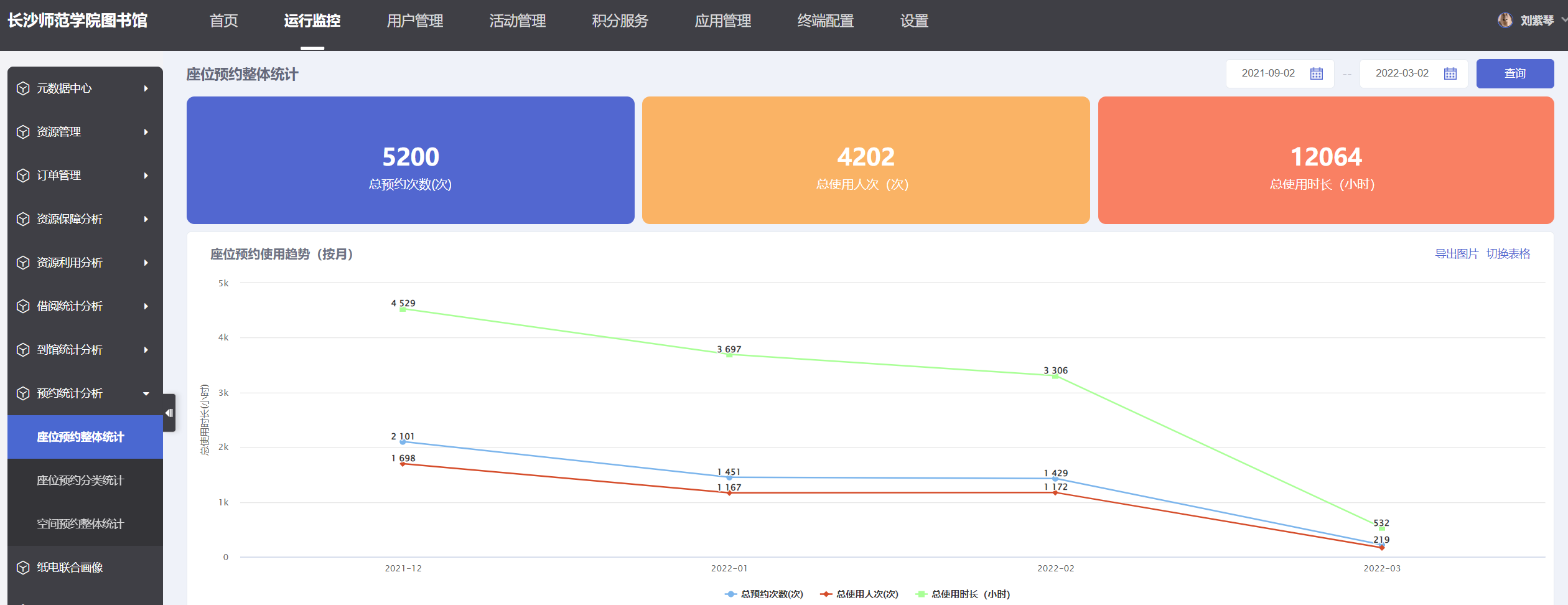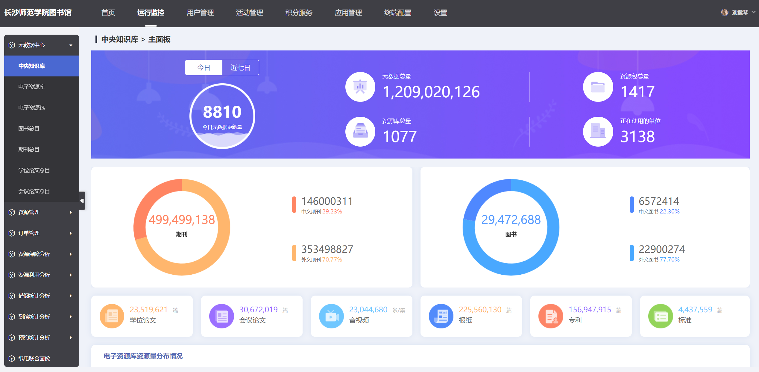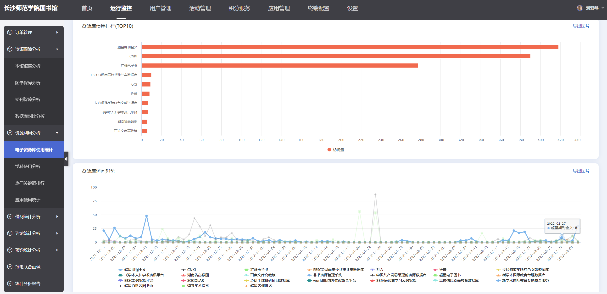 【通过推送借阅记录、门禁记录,对接电子资源管理系统、活动管理系统、学习通数据等,形成纸电一体的数据中心。包括有行为数据分析与展示、个人用户画像、统计分析报告等】