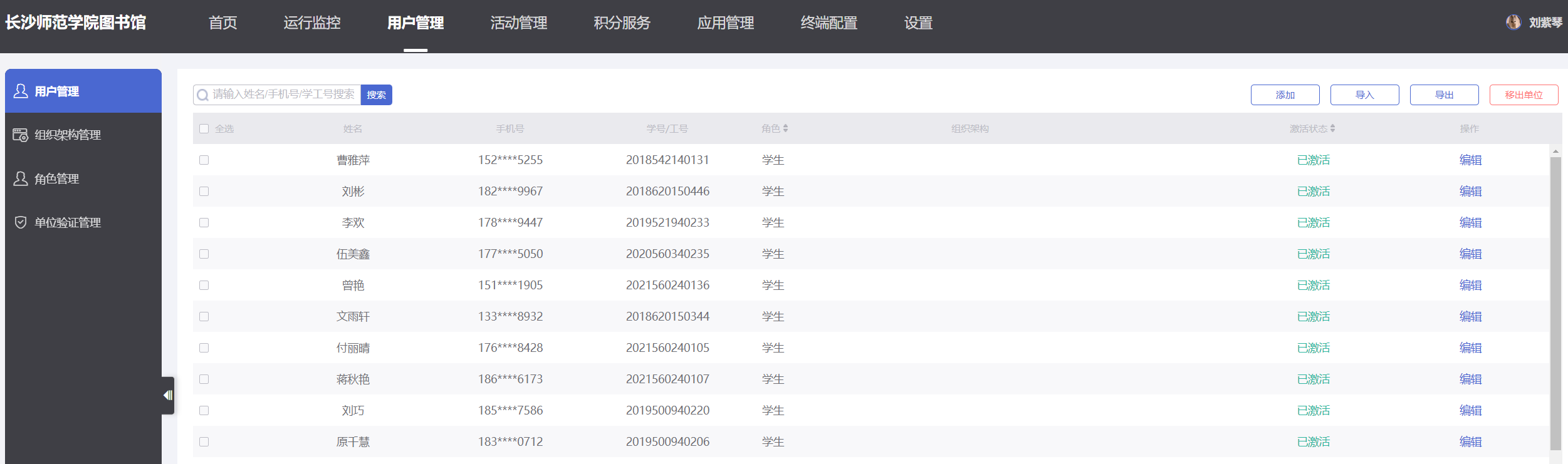【读者“我的图书馆”个人页面,能使用相关个人首页、应用,查看我的借阅、活动、留言等。】