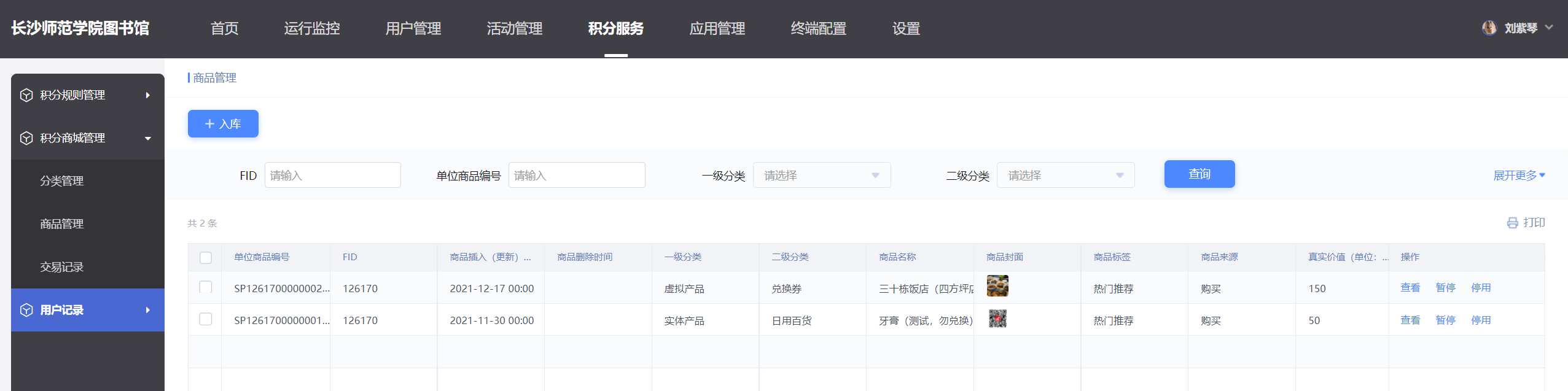 【通过借阅书籍、入馆、参与活动、座位预约等项目可获得相应的行为积分或数据积分,通过对应的积分来获得相应的商品,从而提高入馆积极性。】