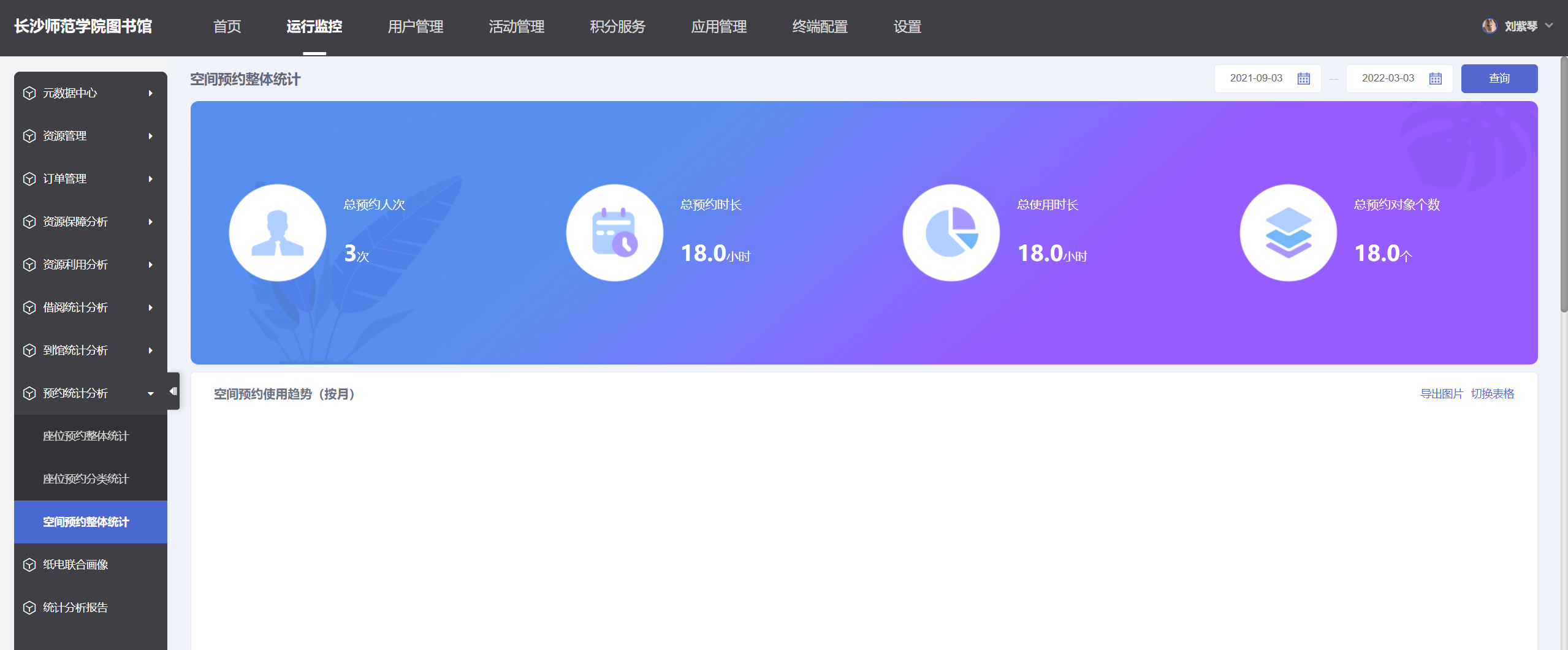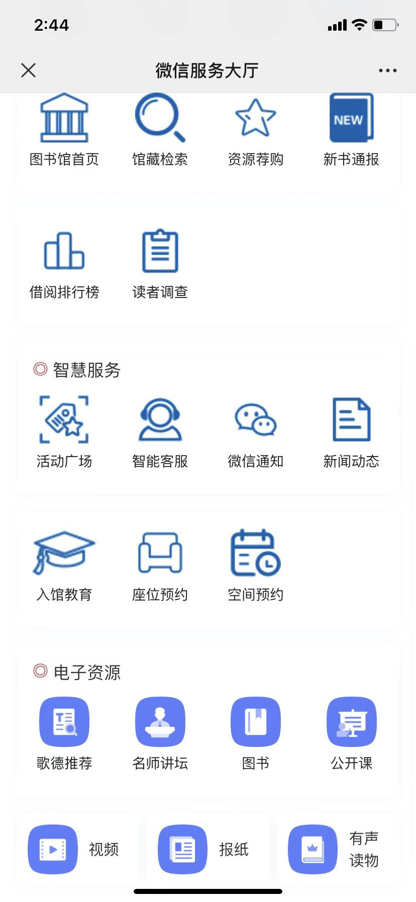 三、运行效果:截止到目前,图书馆所有系统平台上线时间不长,暂无完整数据展示。但通过微信服务大厅的打造,图书馆座位预约、空间预约、自助借还等一系列服务已让读者感受到更智慧化、更便捷的服务,在智慧图书馆建设不断完善的过程中,将给学校师生带来更完美的体验。